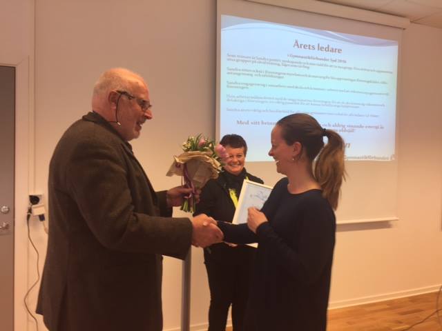 Vår fantastiska ledare Sandra Lehmann har i år utsetts till "Årets ledare" av Gymnastikförbundet Syd.